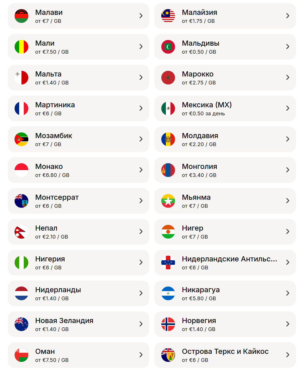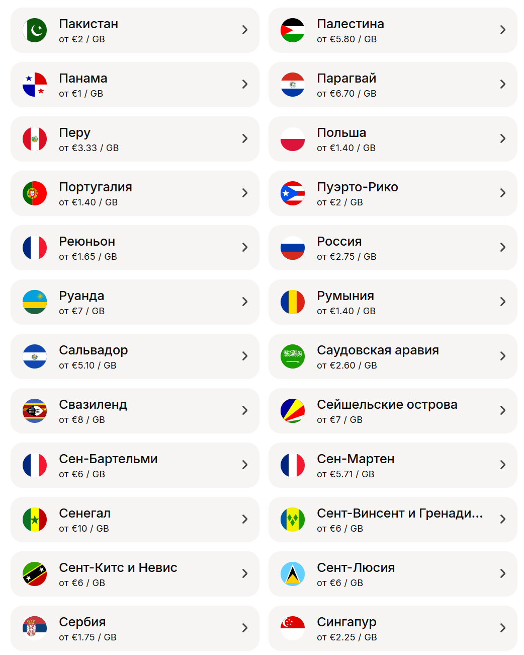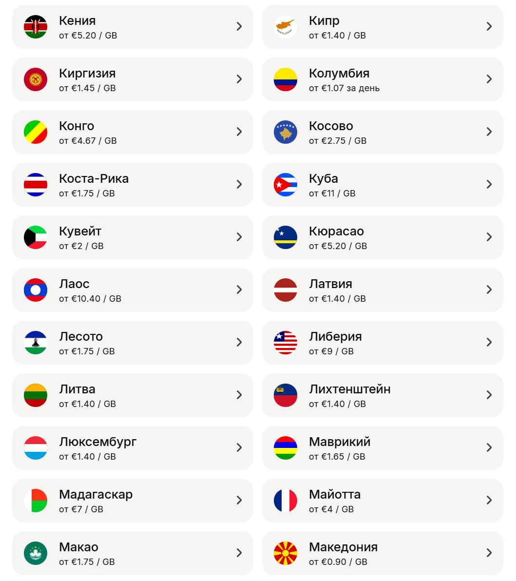 - Страны, в которых использовать Yesim?