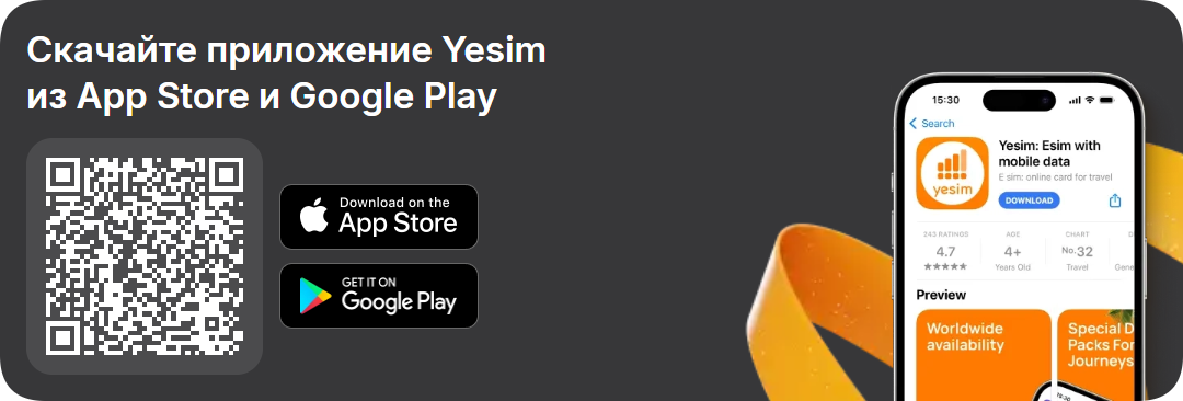 Скачайте приложение Yesim, воспользуйтесь промокодом на скидку и забудьте о роуминге навсегда!